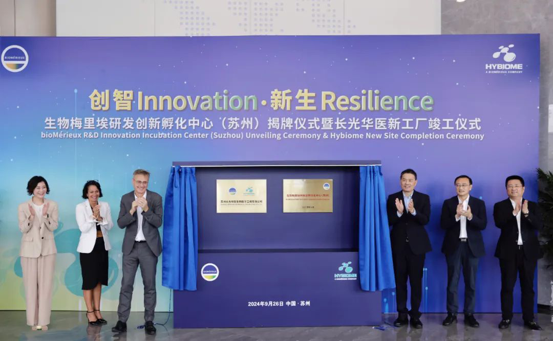 9月26日,生物梅里埃研發創新孵化中心(蘇州)揭牌儀式暨長光華醫新工廠竣工儀式在蘇州高新區長光華醫新工廠如期舉行。儀式由長光華醫總經理張云虹主持,江蘇省委常委、蘇州市委書記劉小濤,蘇州市委常委、市委秘書長王飏,蘇州高新區黨工委書記、虎丘區委書記毛偉,生物梅里埃全球首席執行官皮埃爾伯樂,生物梅里埃全球執行副總裁(分管研發)、全球首席技術官席琳羅杰,生物梅里埃全球臨床業務人力資源高級副總裁、大中華區總裁張群麗共同揭牌